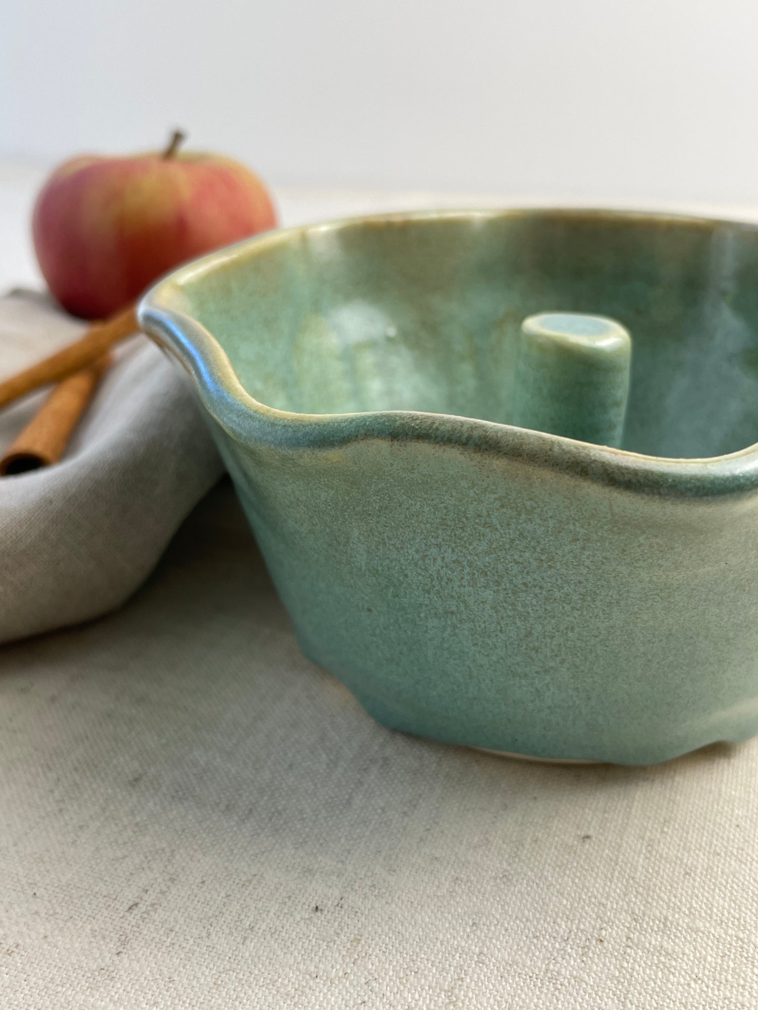 Seconds: This apple baker has a line of pinholes in the glaze on one section of the exterior of the baker. See the third photo in which the baker is upside down.