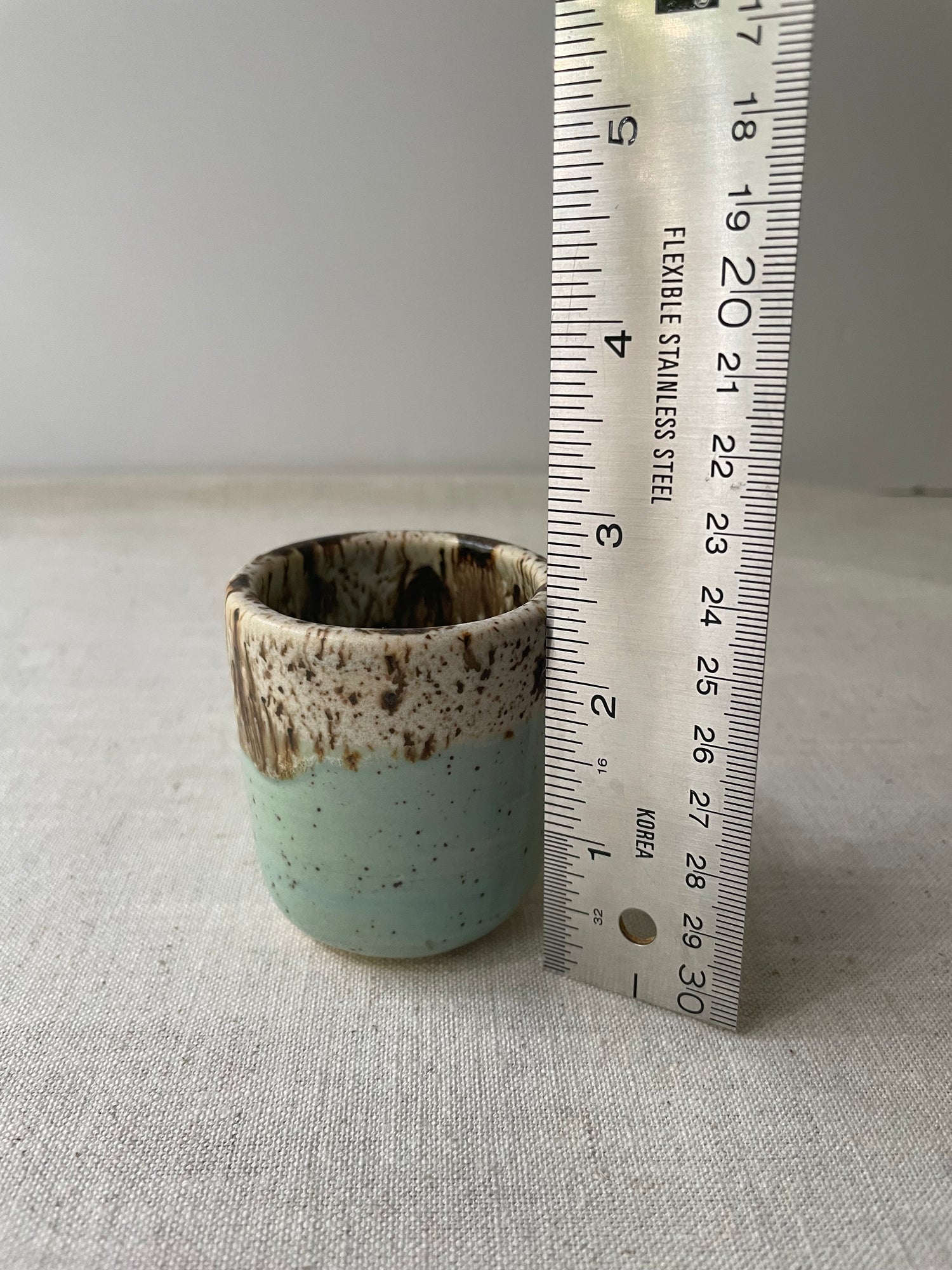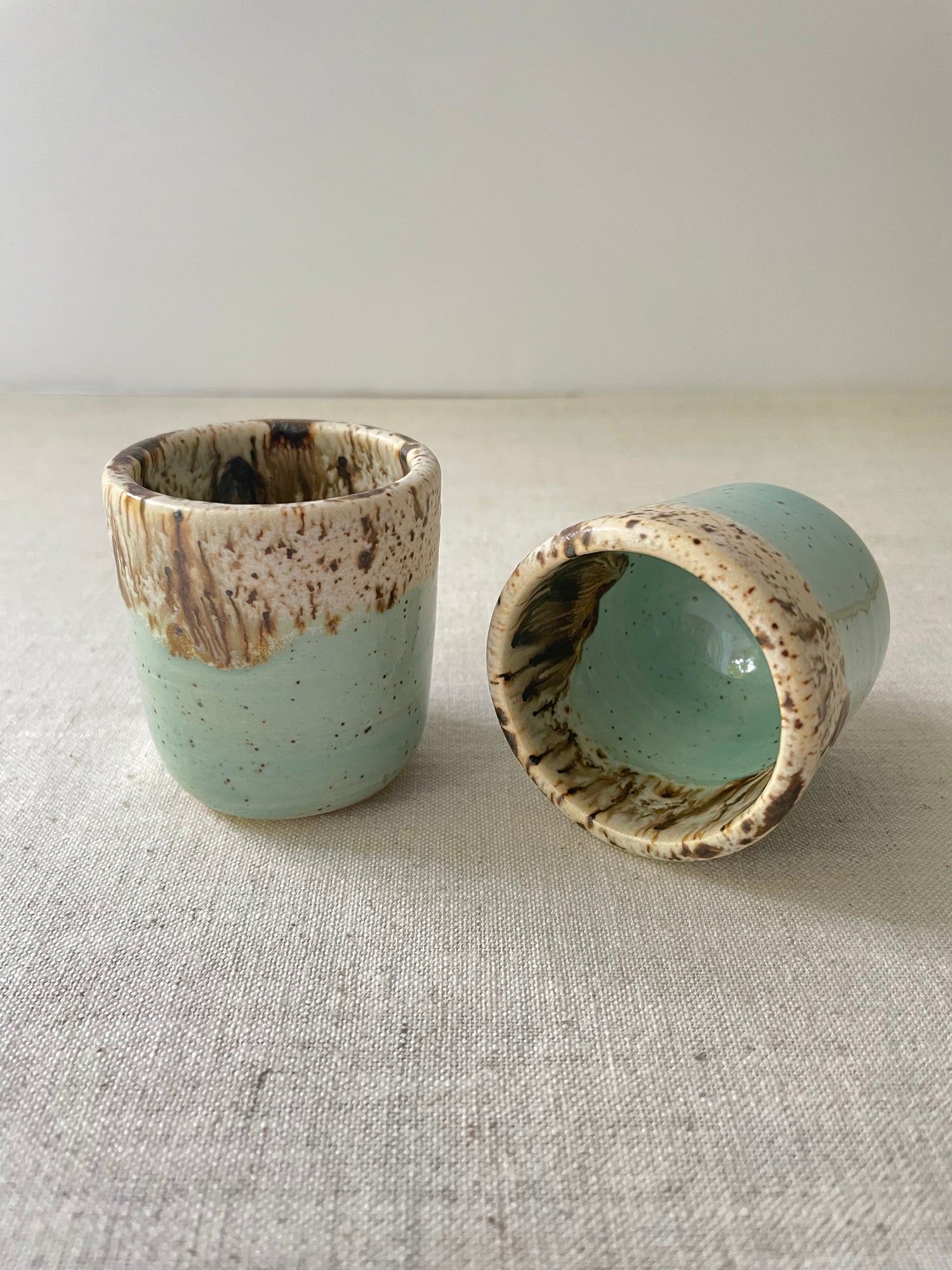 Blue and Birch Espresso Cups, Speckled Clay, Set of 2