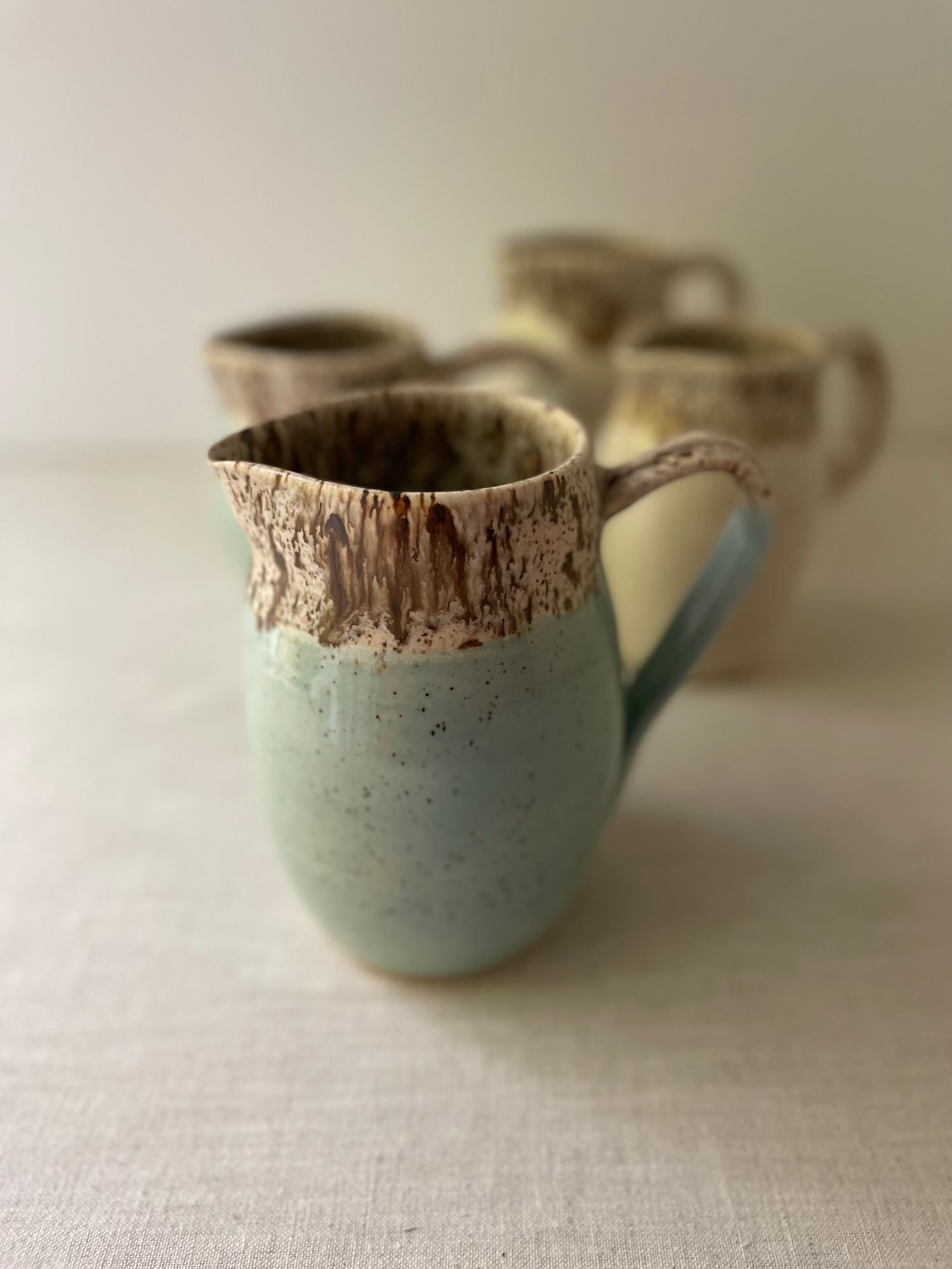 Blue and Birch Speckled Clay Pitcher 2