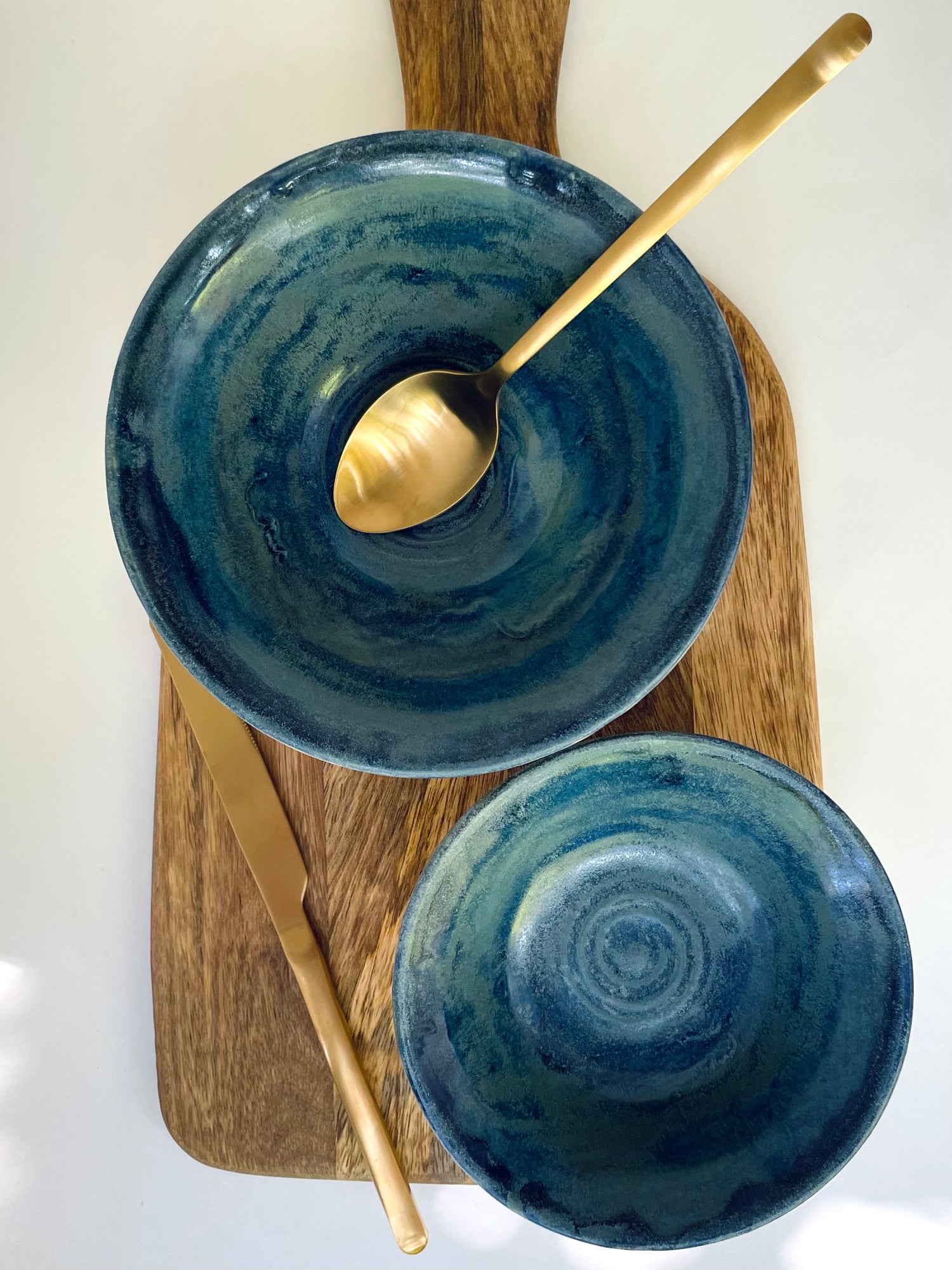 These durable stoneware bowls are thrown and glazed by hand, and will last a lifetime with proper care. The set makes a lovely choice for a wedding gift, special holiday present, housewarming gift or as an indulgence for you!