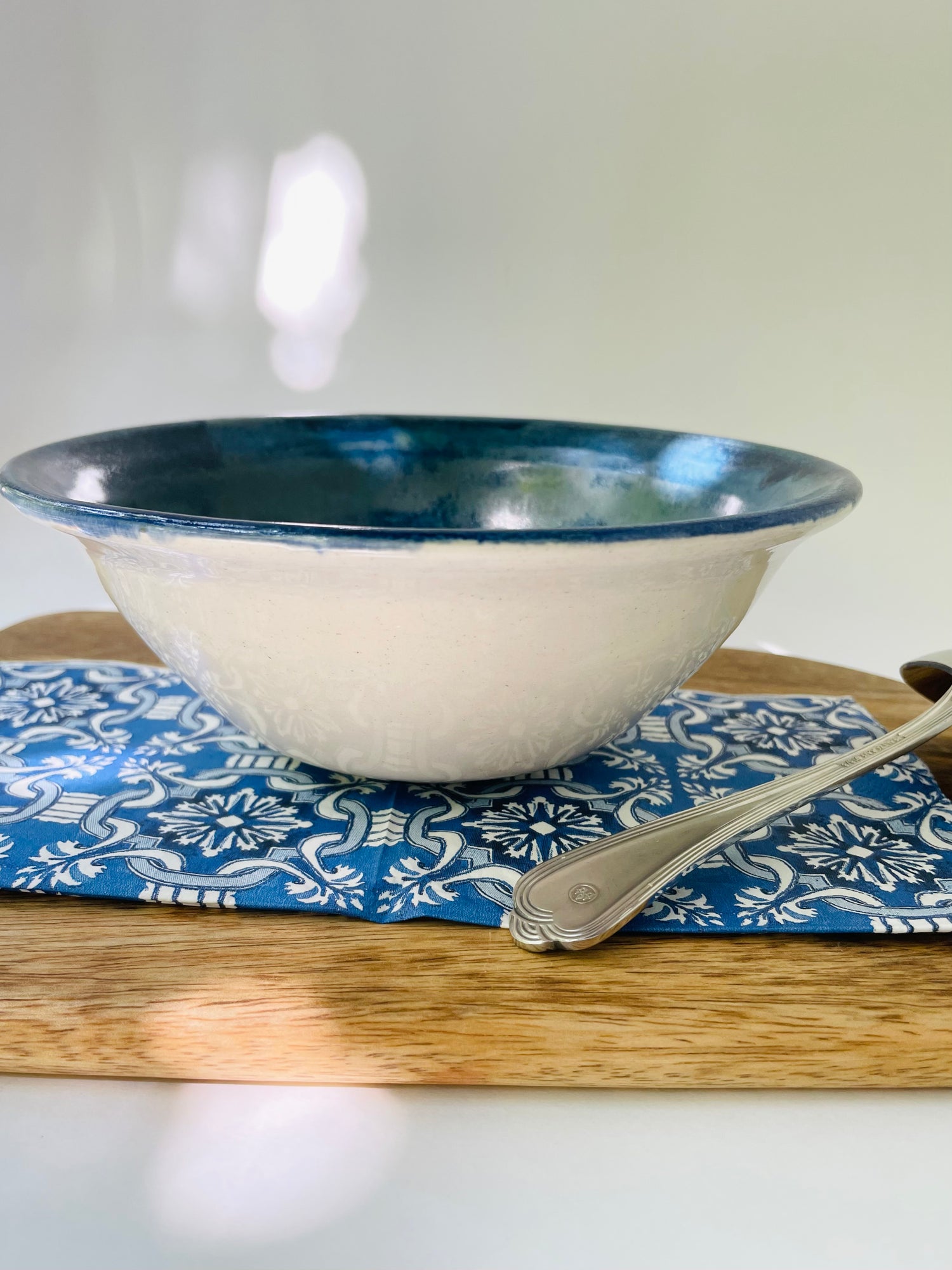 This durable stoneware bowl is thrown and glazed by hand, and will last a lifetime with proper care. It makes a thoughtful present for a birthday, hostess or housewarming, or as a treat for yourself!