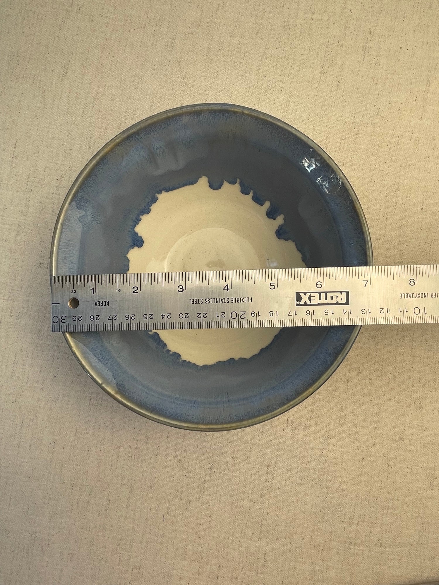 Delicious shades of blueberry and cream of this unique pottery bowl allow it to coordinate with an array of kitchen designs and home interiors. While decorative, the gently rimmed bowl is completely functional. Use it as a small fruit bowl, or to serve salads, pastas and generous side dishes for large families or gatherings. Or simply enjoy it as a charming home-decor accessory.
