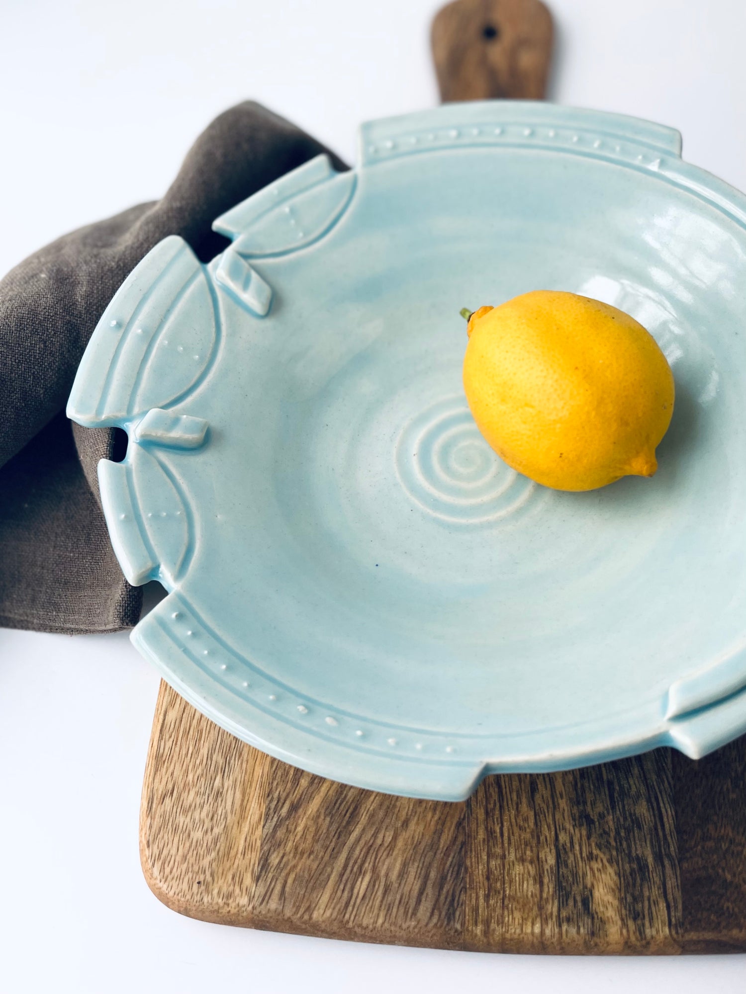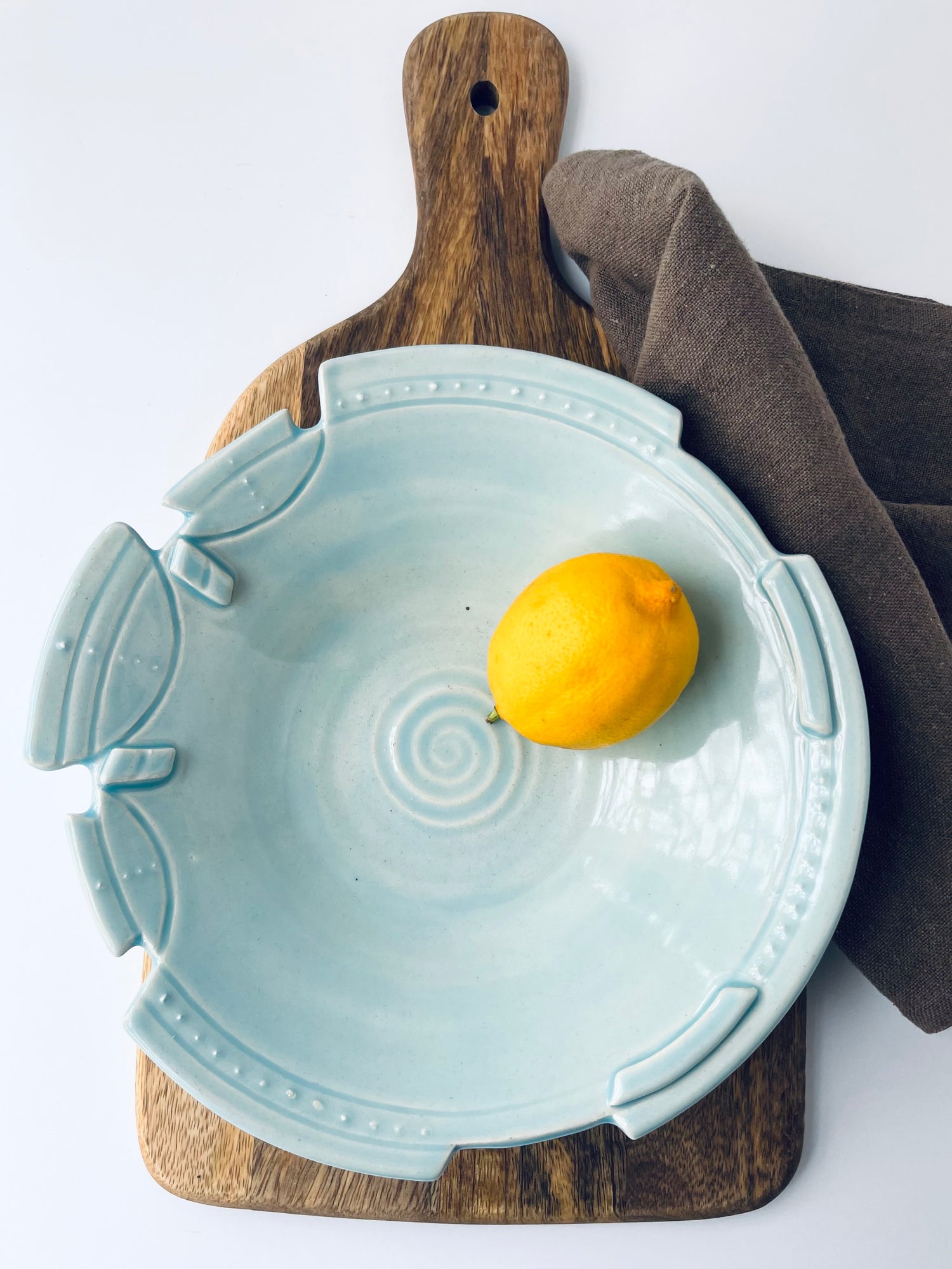 While decorative, this ceramic bowl features a food-safe glaze. Use as a fruit bowl, serving dish for bread or crackers, or as a unique home-decor item alone or filled with your treasures.