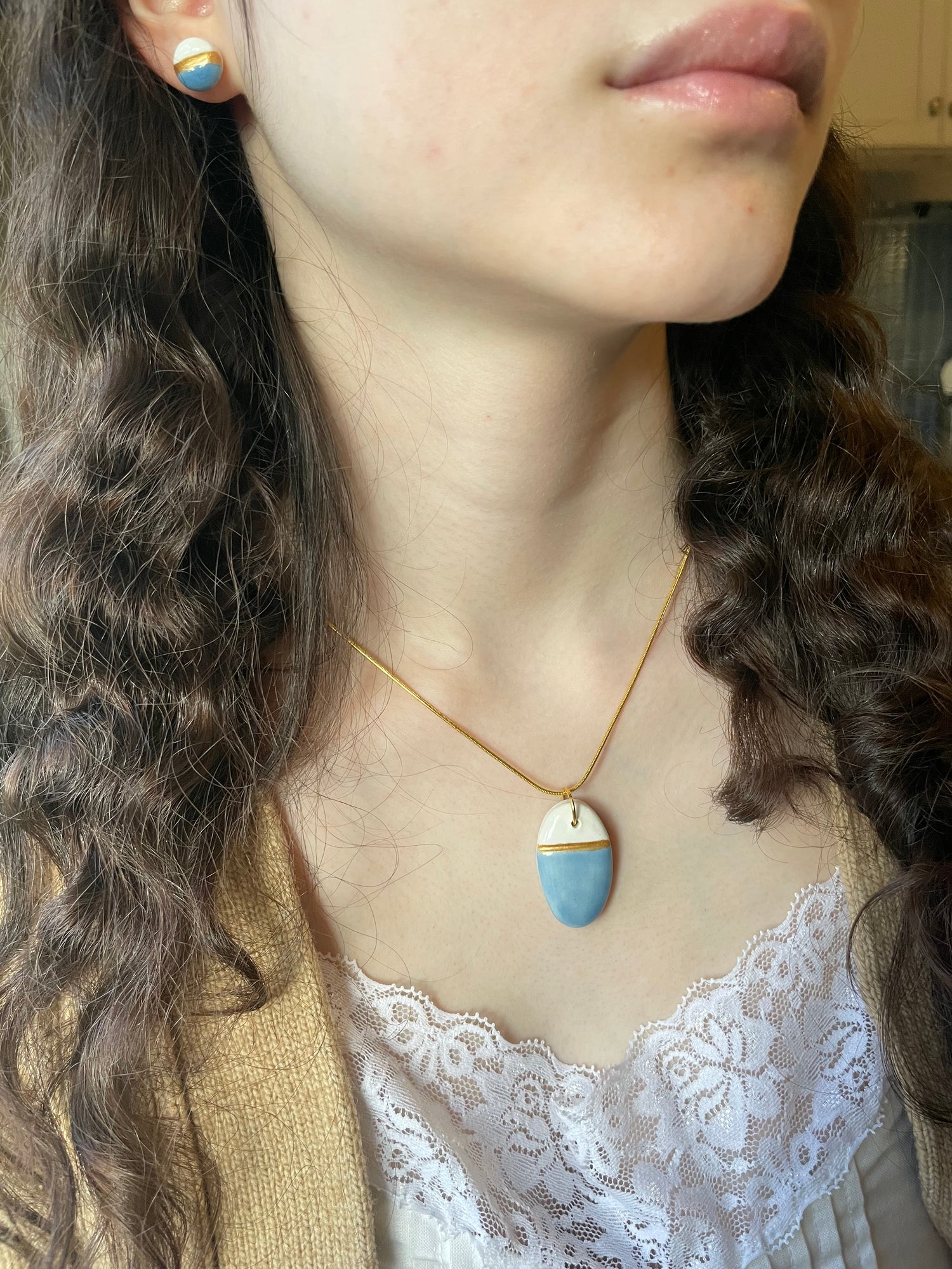 * 1 and 1/2-inch-long handmade porcelain pendant