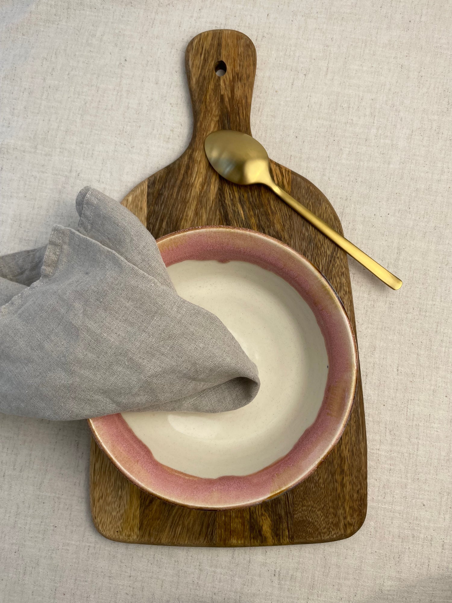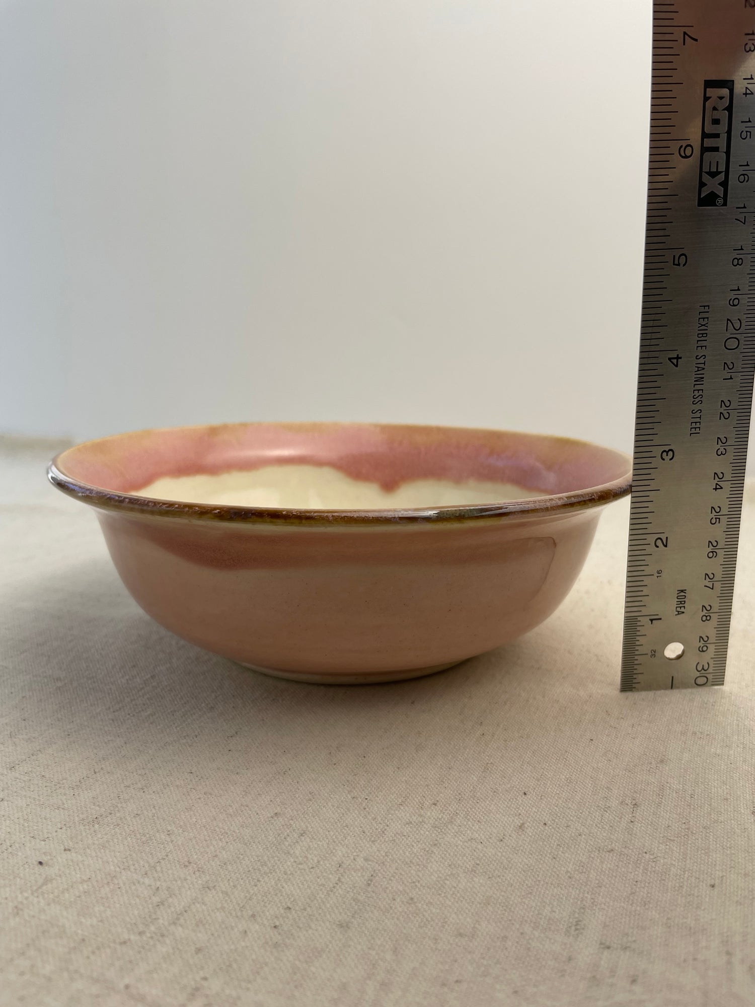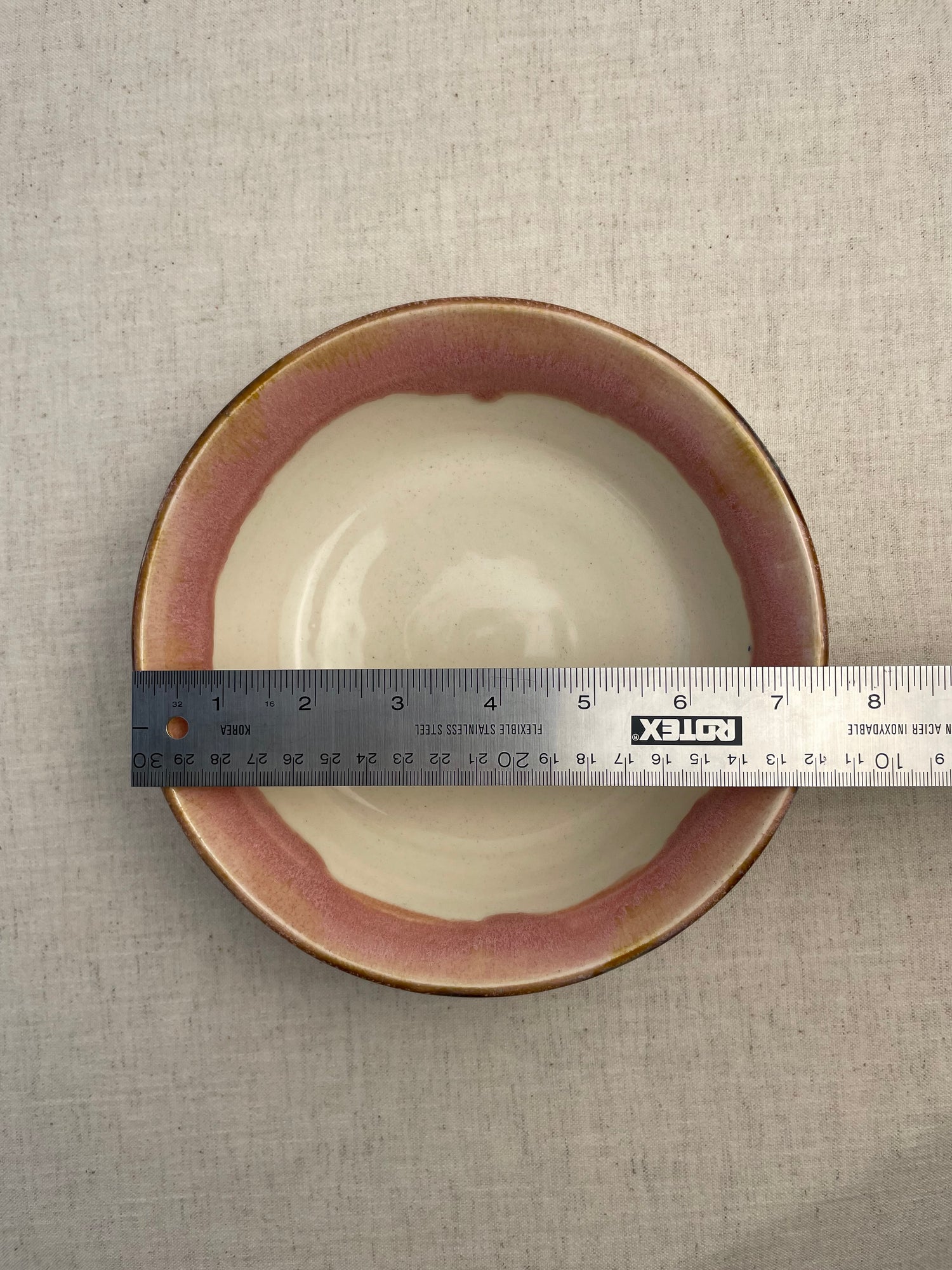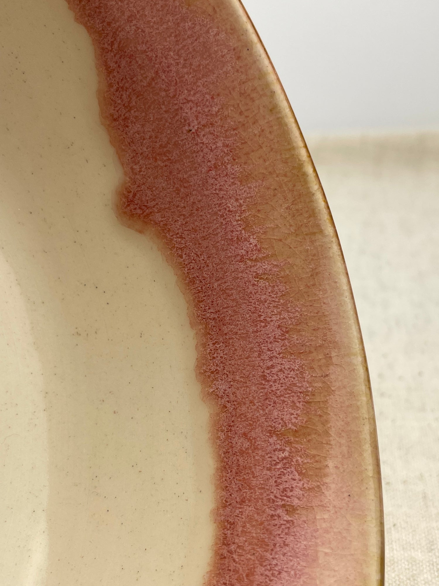 Romantic shades of pink quartz and a touch of topaz grace this elegant bowl. A decorative crackle effect in the glaze results in the overlap of the tones near the rim. While decorative, this graceful bowl can function as a medium-sized serving bowl for side-dishes or a colourful noodle bowl. Or simply enjoy it as a charming home-decor accessory.