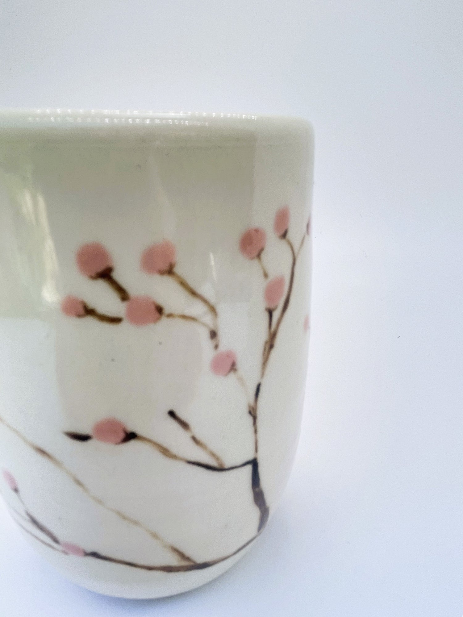Gentle branches of sakura buds adorn this charming vase. Enjoy the anticipation all year of blooms just about to burst. Fill with fresh flowers, sprigs of greenery, everlasting floral stems, or enjoy as a pretty accent piece in itself.