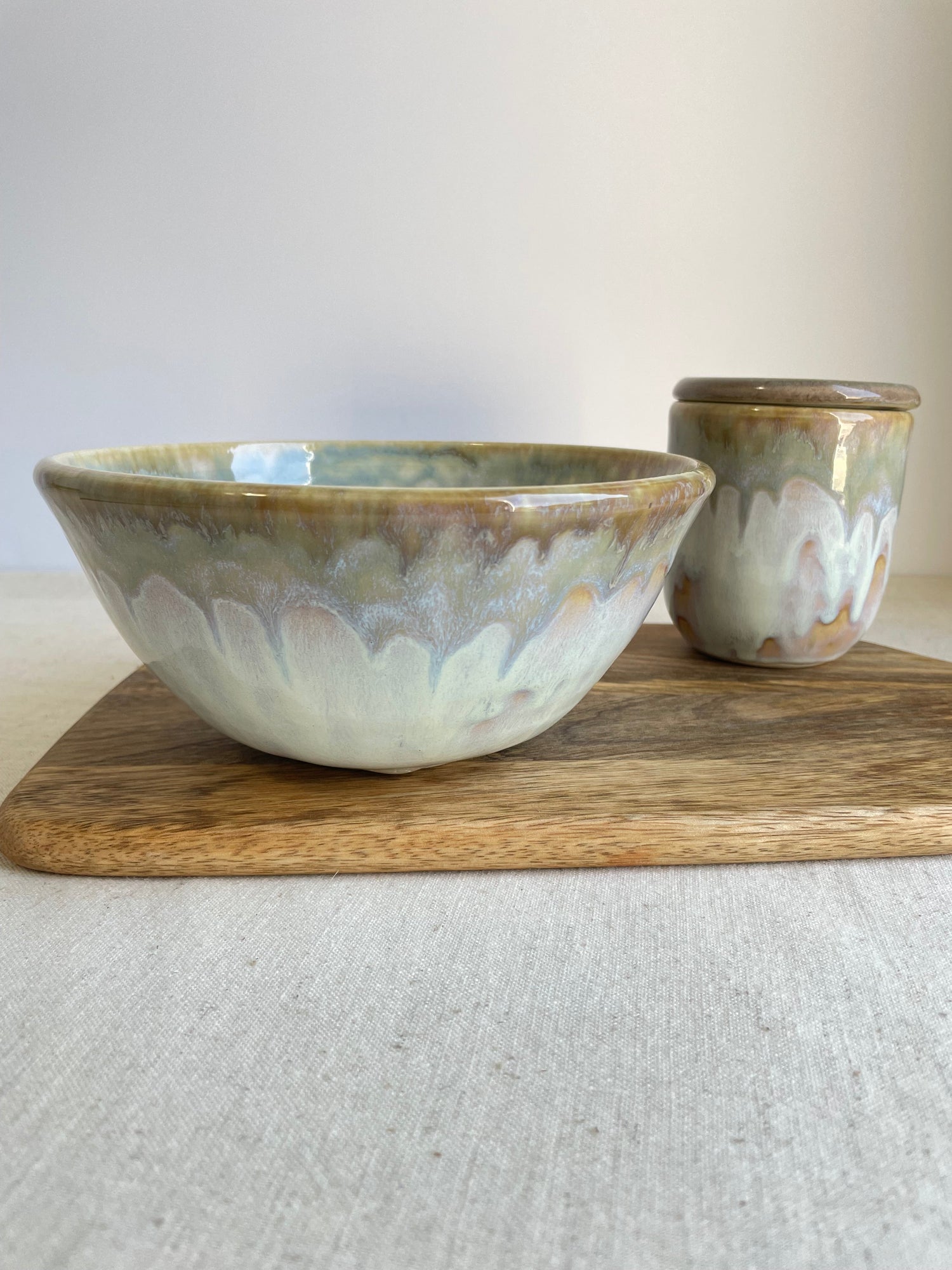 Glazed in gentle natural tones, this yunomi plus lid gives you options far beyond your favourite drink, whether it's a morning coffee, a relaxing herbal tea, miso soup or hot chocolate. Use for breadsticks and a dollop of dip, sipping soup and crackers, or veggies and a spoonful of hummus. Treat yourself to the possibilities.
