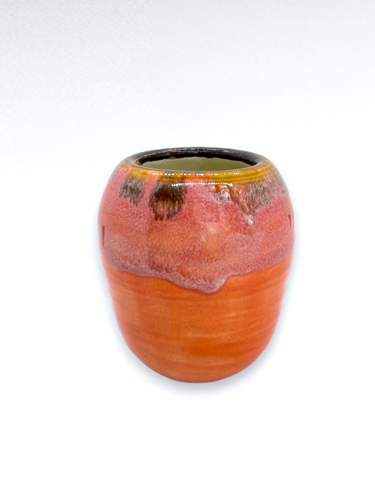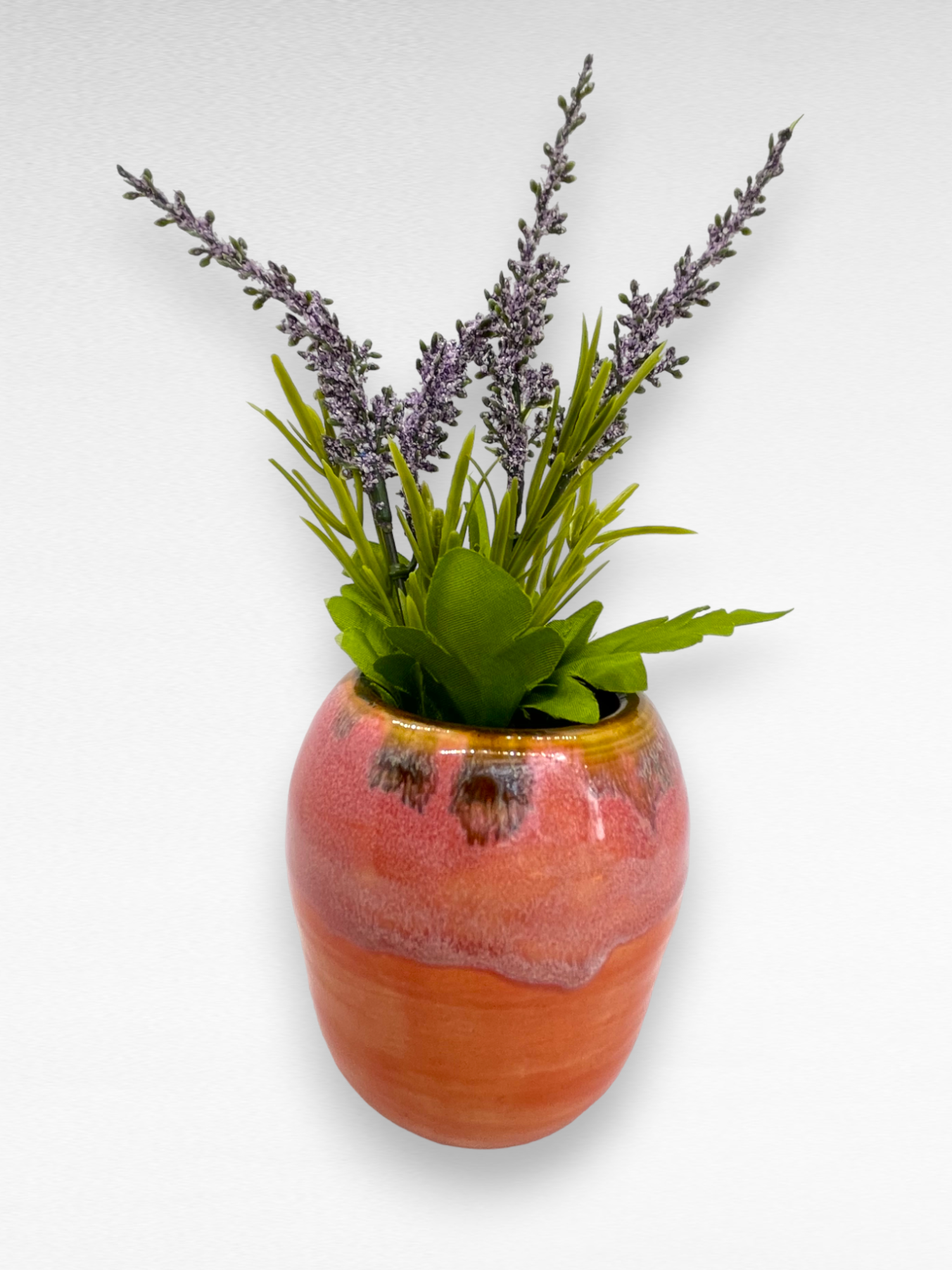 This pink ceramic bud vase makes a charming and functional accent piece that adds a boldly feminine touch to home decor. For this handmade ceramic vase, I threw the form on the wheel and once fired, I painted it with a combination of a bottom glaze that's reminiscent of ripe and rosy rhubarb stalks, topped by a blush pink that would react to result in these luscious varied tones. This bud vase makes a sweet pink home decorative accessory or a unique gift idea.