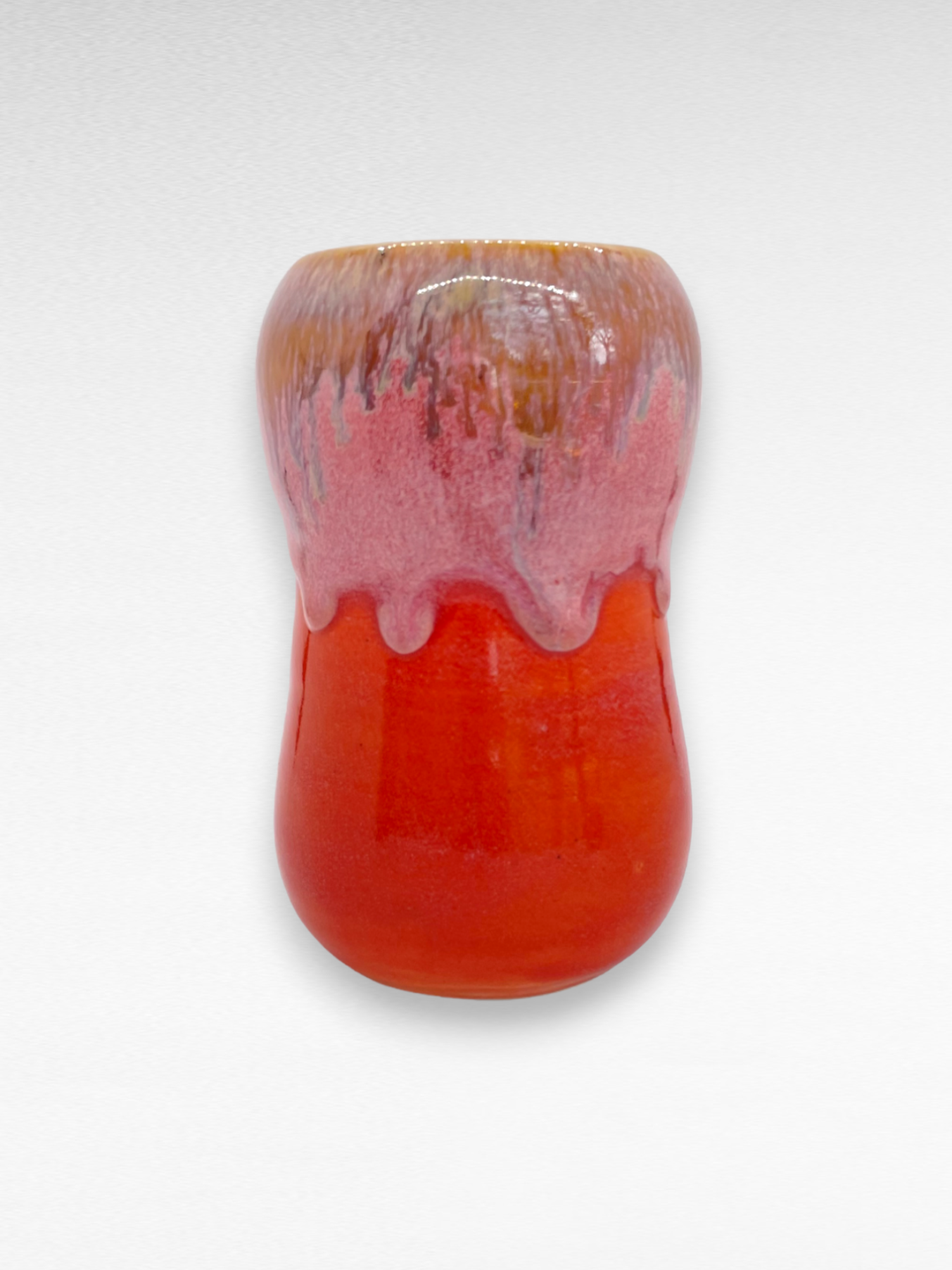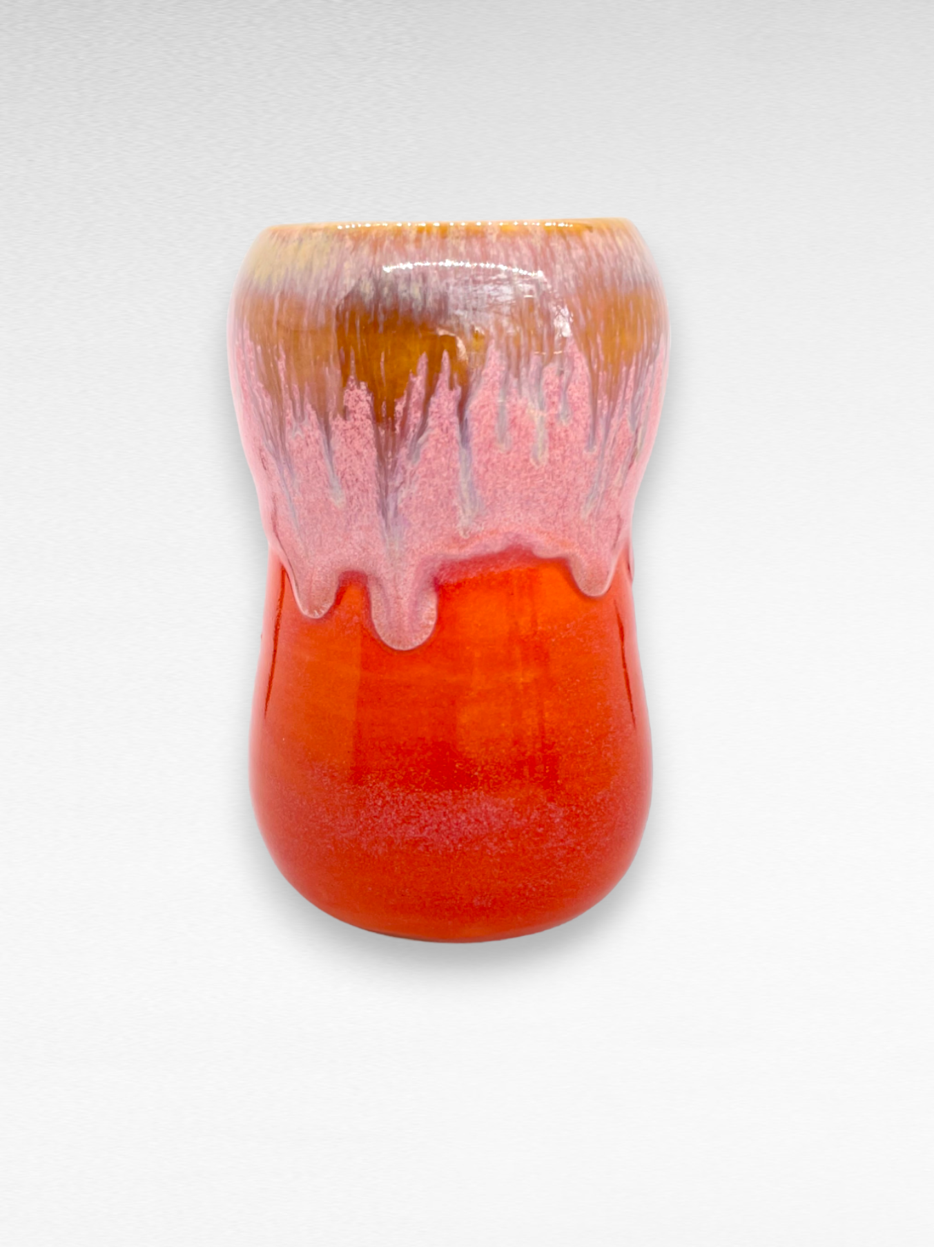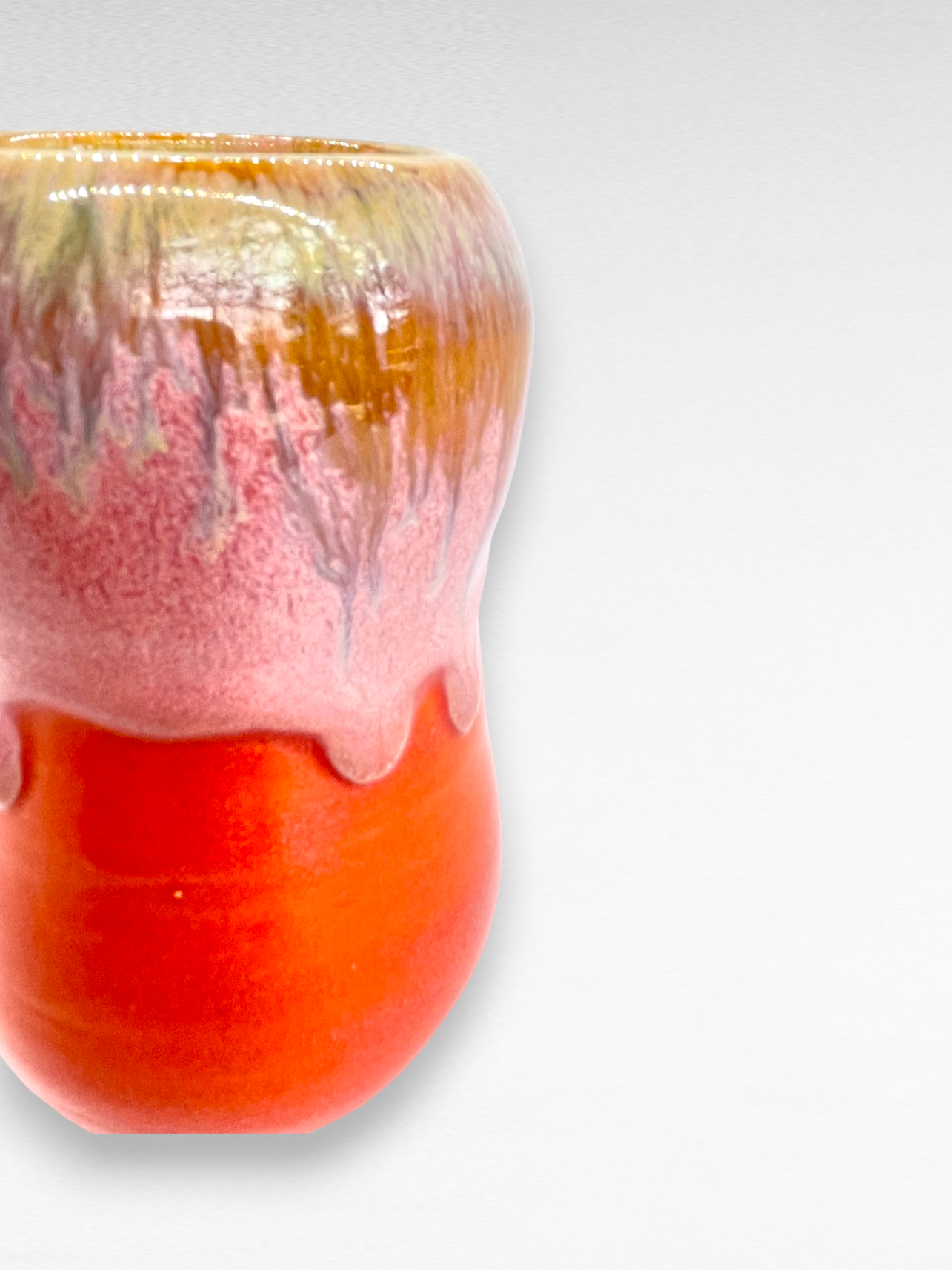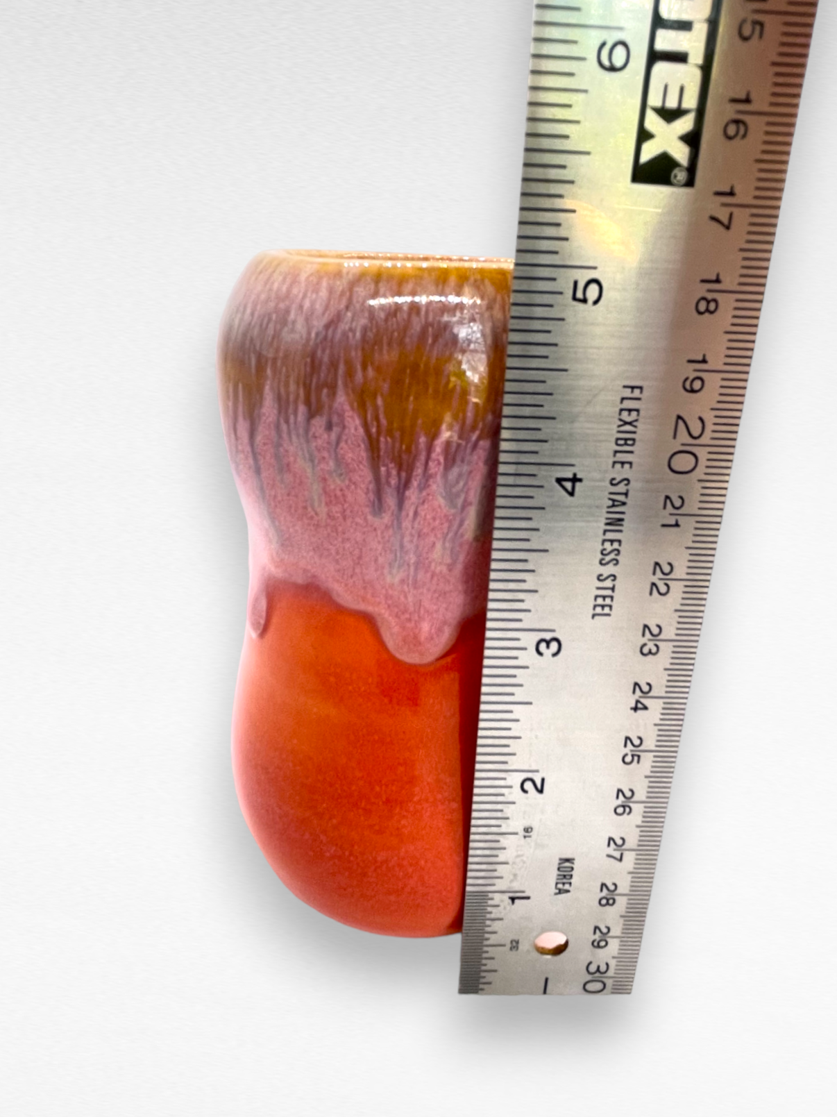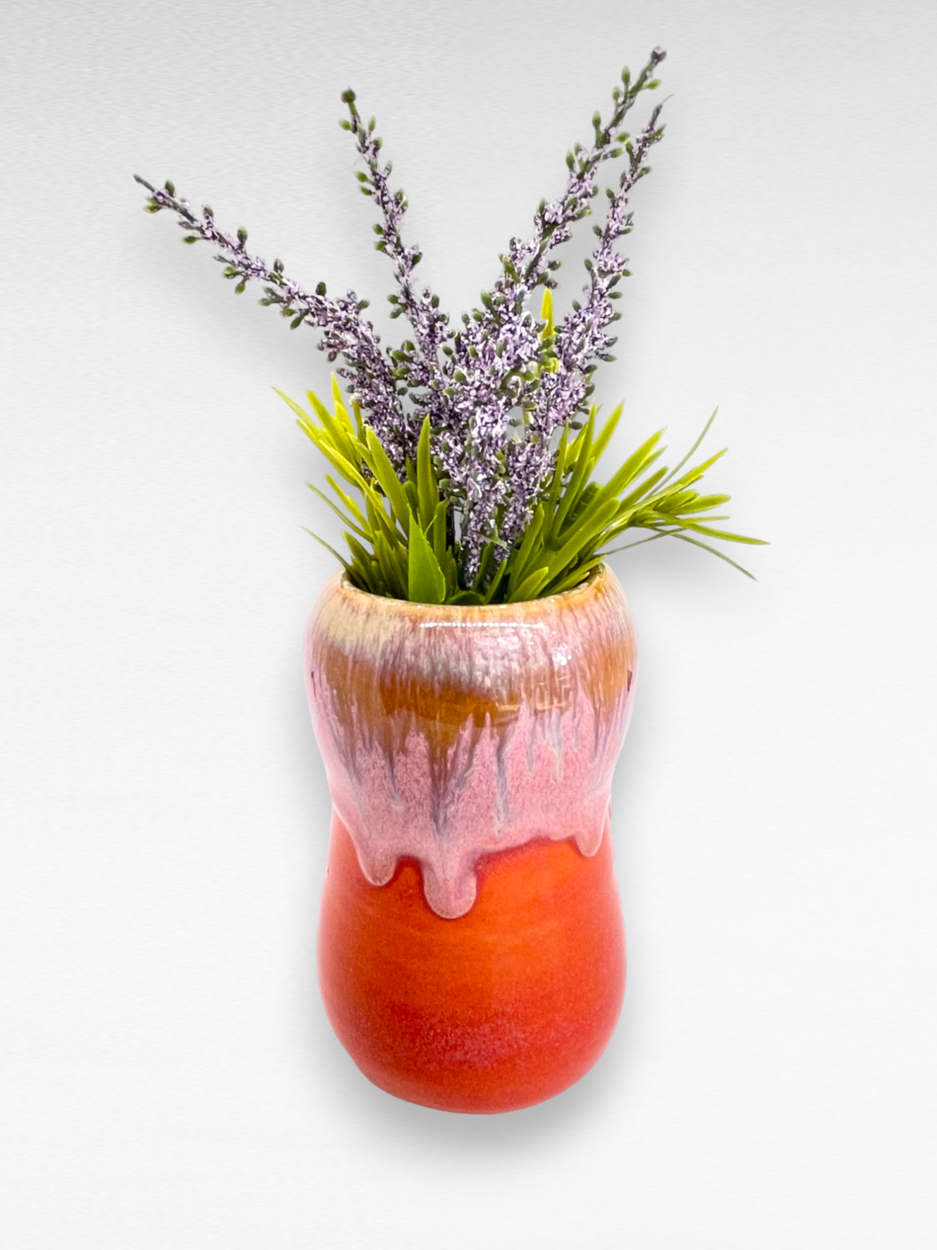 This blush pink and coral ceramic vase makes a cheerful yet modern accent piece. For this handmade ceramic vase, I threw the form on the wheel and once fired, I painted it with a combination of a bottom glaze that's reminiscent of ripe and rosy rhubarb stalks, topped by a blush pink that would react to result in these luscious varied tones. This flower vase makes a great pink home decorative accessory or a unique gift idea.