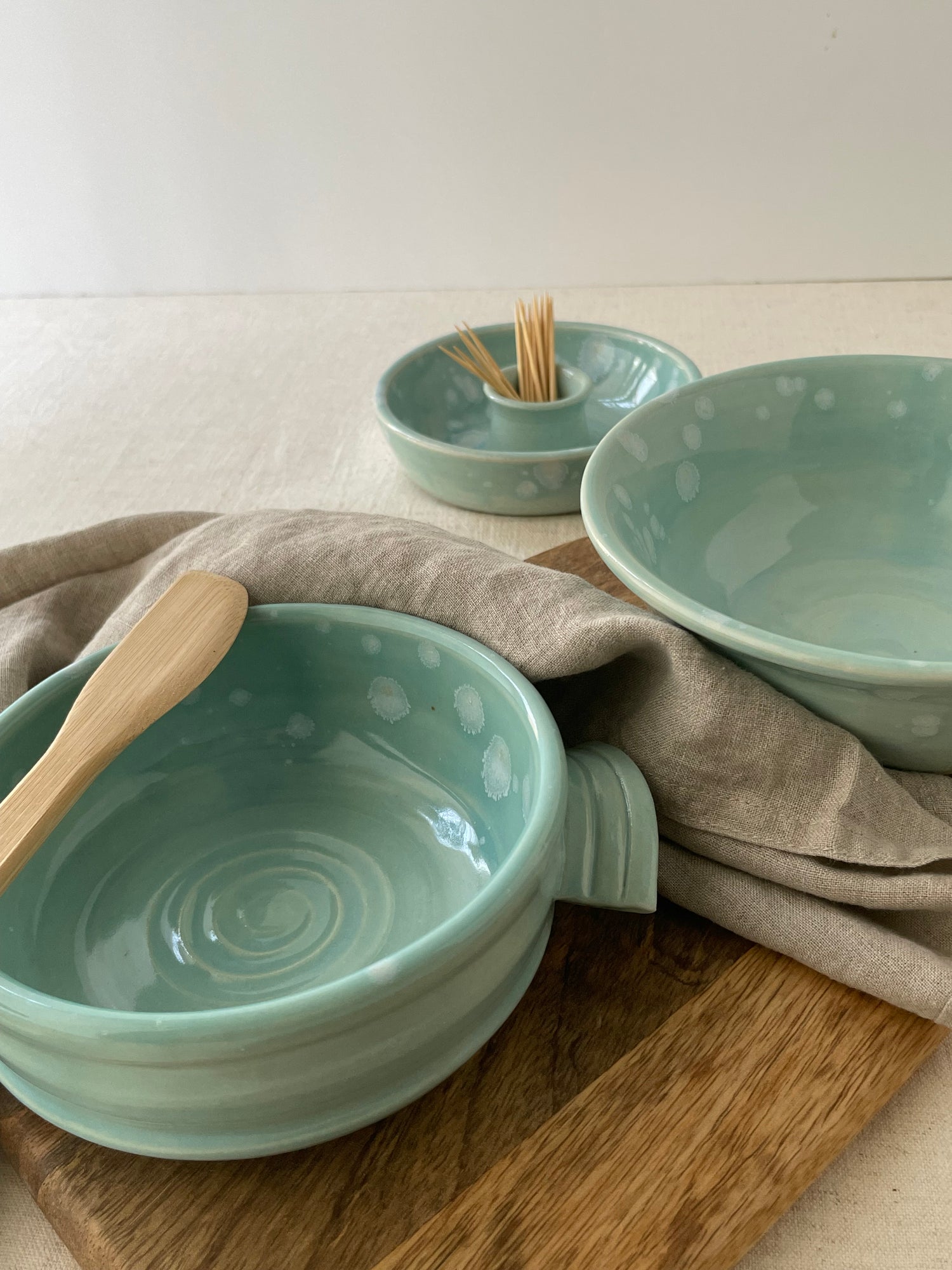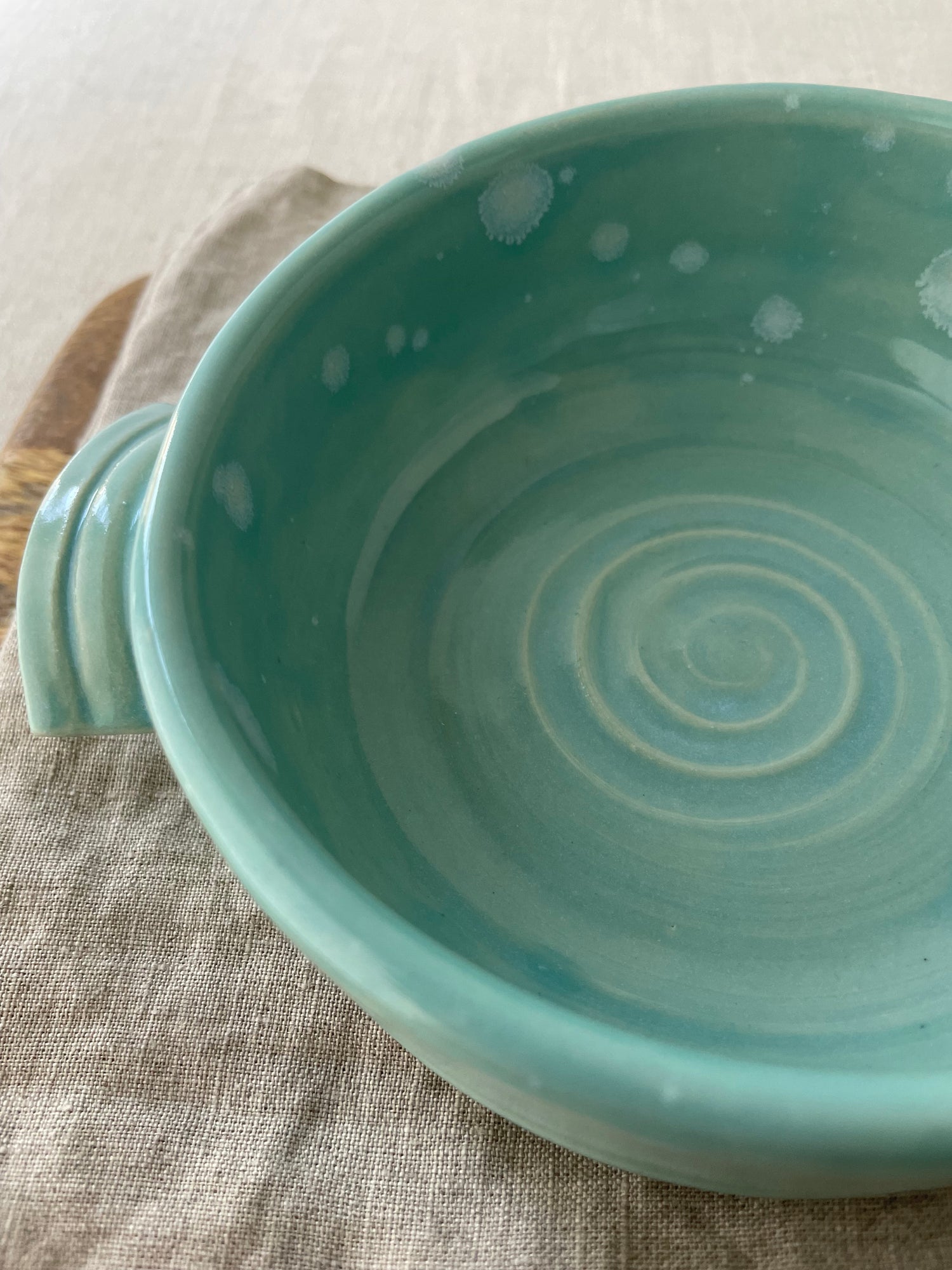 This durable stoneware piece is thrown and glazed by hand, and will last a lifetime with proper care. It makes a lovely choice for a special birthday gift, bridal shower, or as a treat for yourself!